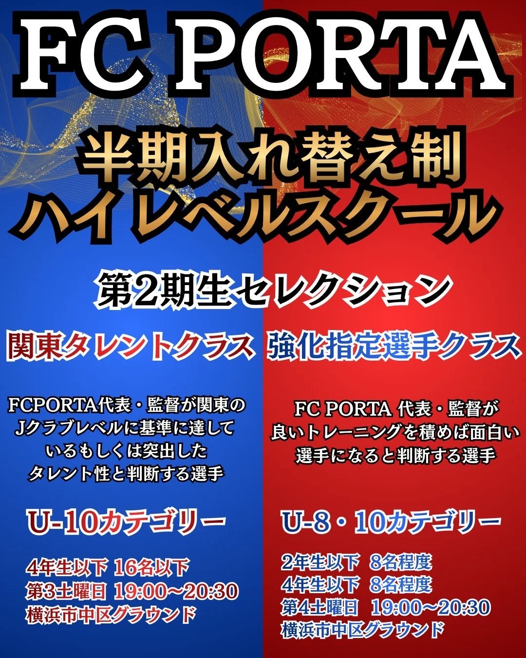【 第2期生 FCPORTA ハイレベルスクール募集開始 】